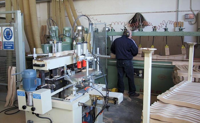 The pieces are accurately milled and turned using modern machines. In this phase the outline of the product to be manufactured is shaped. The wood mostly used by Seven Sedie is beech as it is an excellent turning wood; this is not however the only type of wood used.
