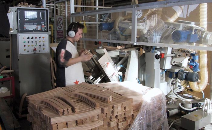 After being dried the wood, usually beech, is cut to obtain the different pieces that make up a product. The drying phase is of fundamental importance as the humidity of the wood influences the final quality of the product.