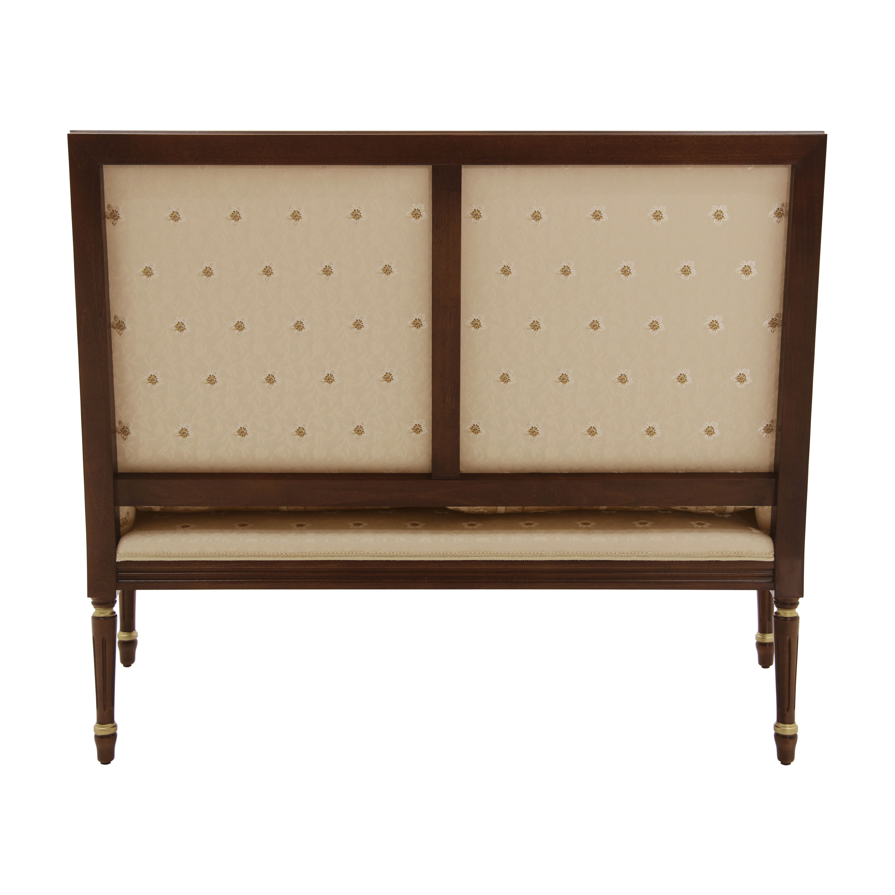 The sofa is upholstered with webbing and superior quality foam and has two comfortable padded seat cushions.