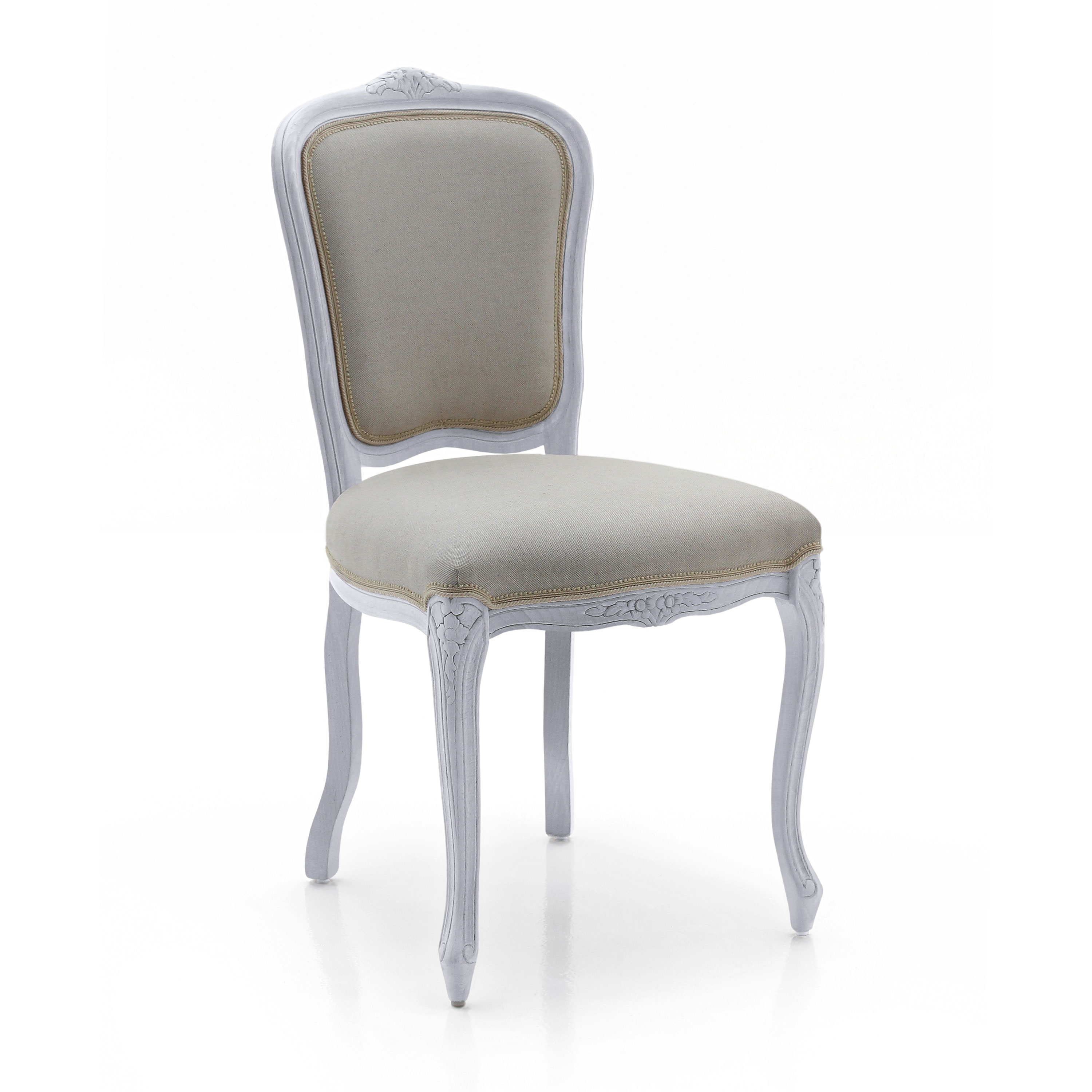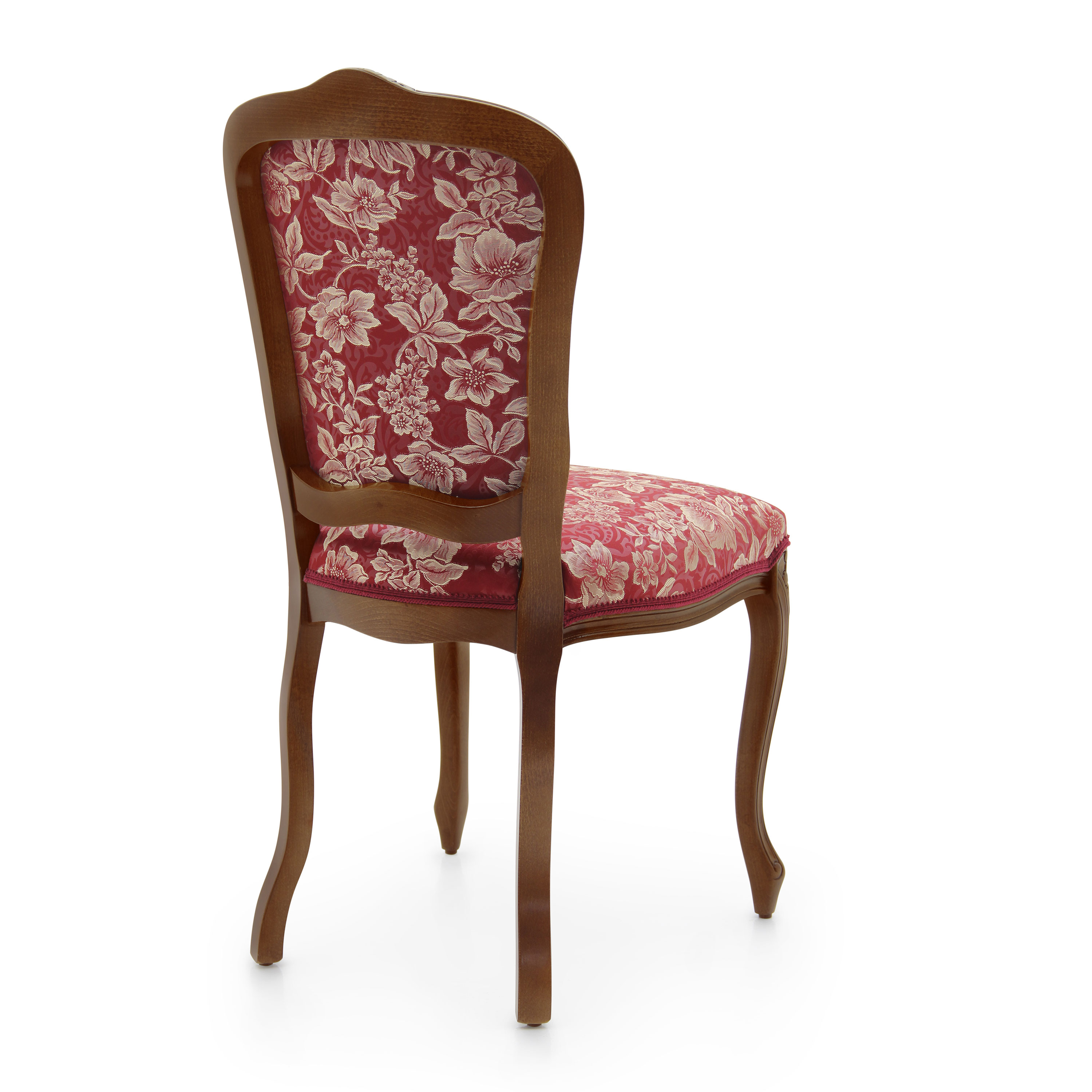 Fiorino is a restaurant chair, a classic Louis XV replica dining chair, with a solid beech wood structure. The seat is padded with webbing and superior quality foam. The contained dimensions make it ideal for contract use. The restaurant chair Fiorino can be reinforced with additional side rails or "U" stretcher, the perfect hotel chair. Upholstery can be customised with nails, braiding, double welt or welt. 100% made in Italy.