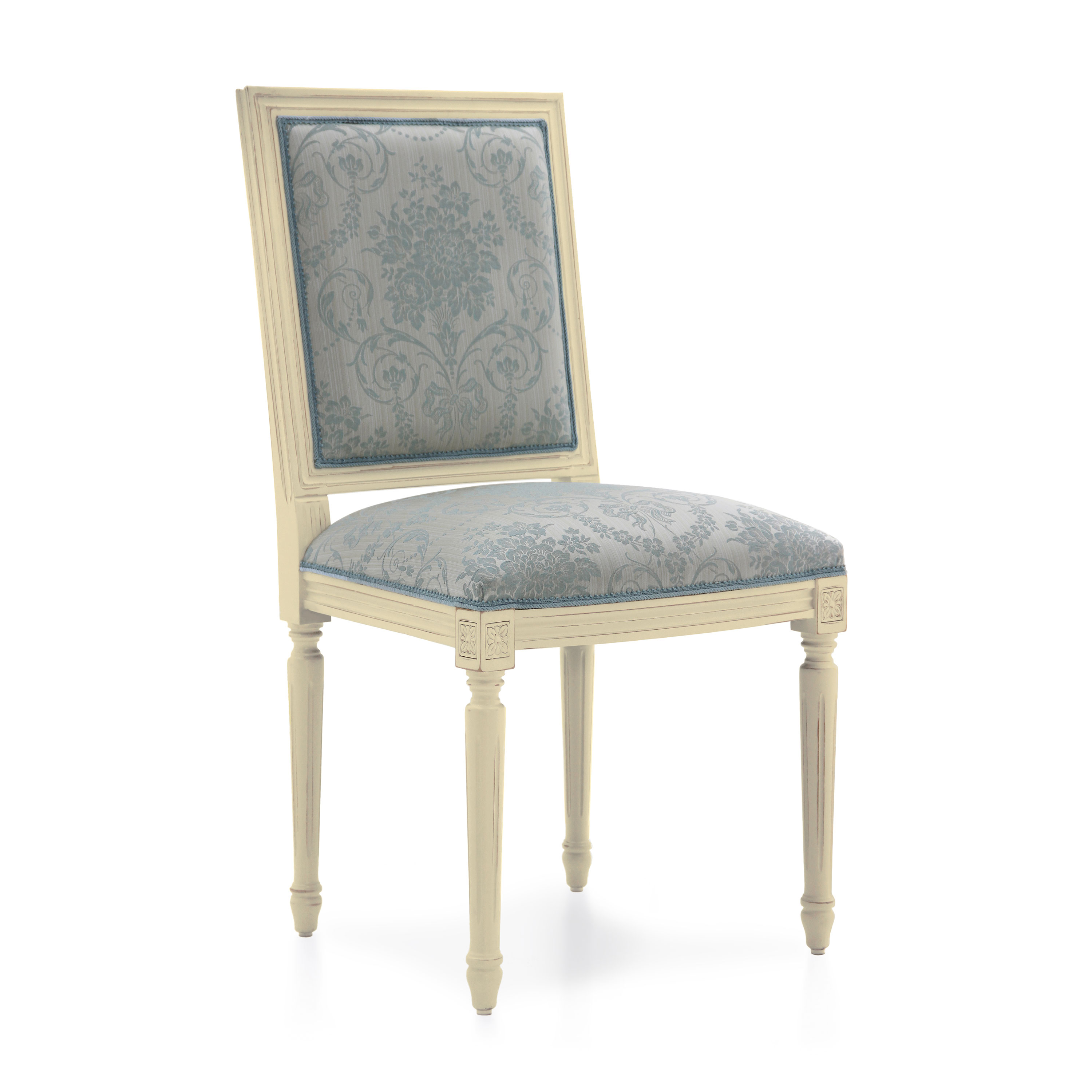 Settecento is a restaurant chair, a Louis XVI style replica chair with square back. The seat of this classic chair is padded with webbing and superior quality foam. The contained dimensions make it ideal for contract use. Can be reinforced with additional side stretcher. Upholstery can be customised with nails, braiding, double welt or welt. 100% made in Italy.