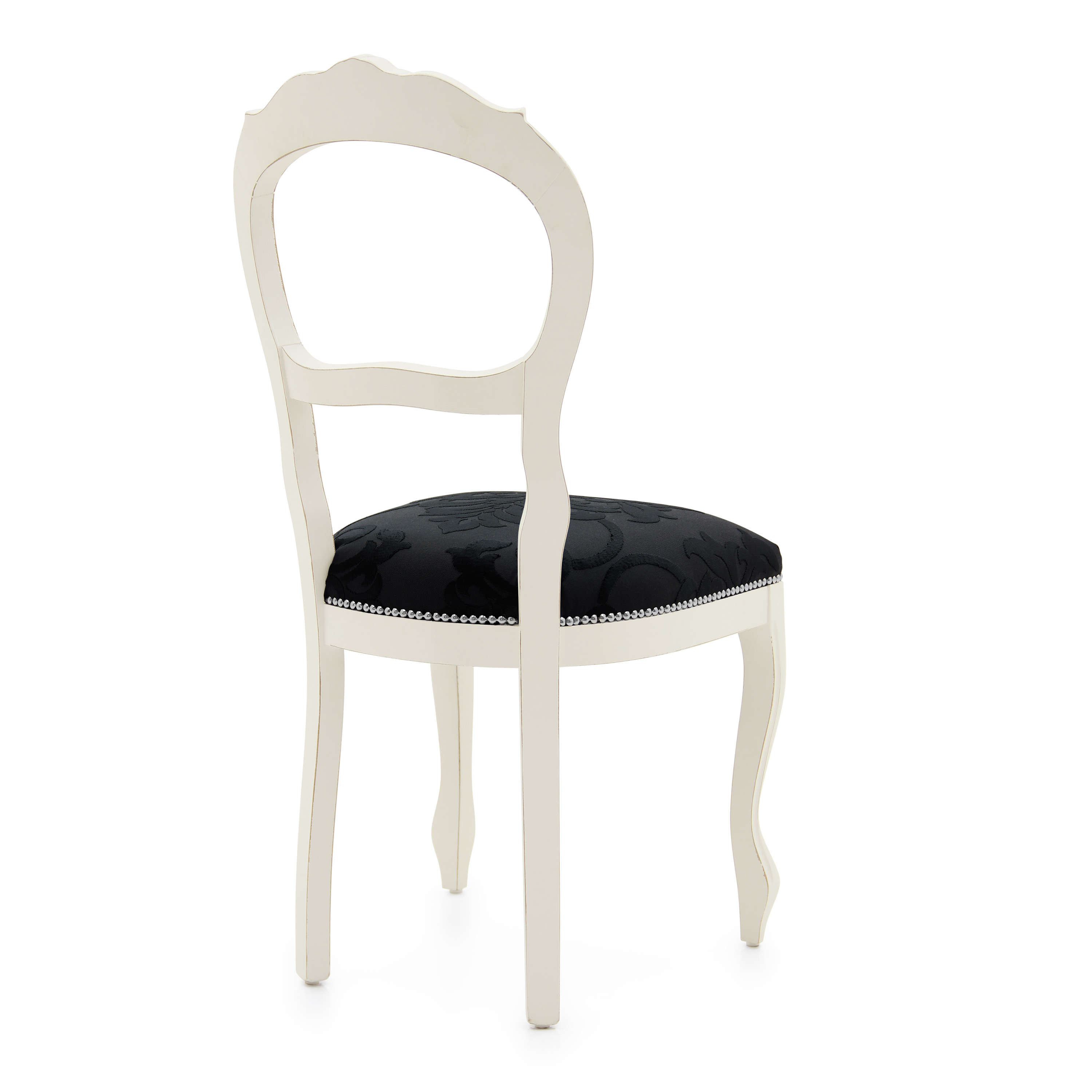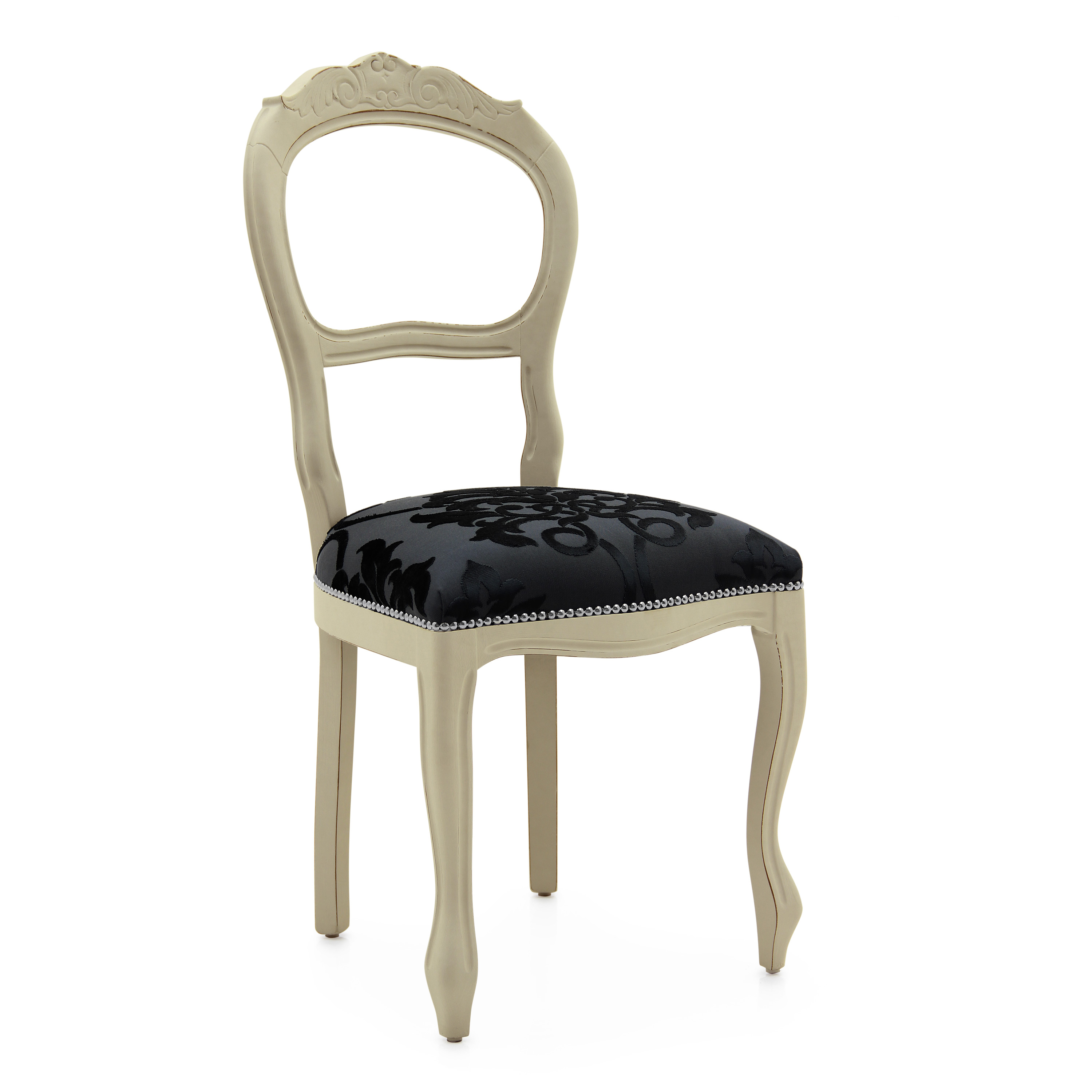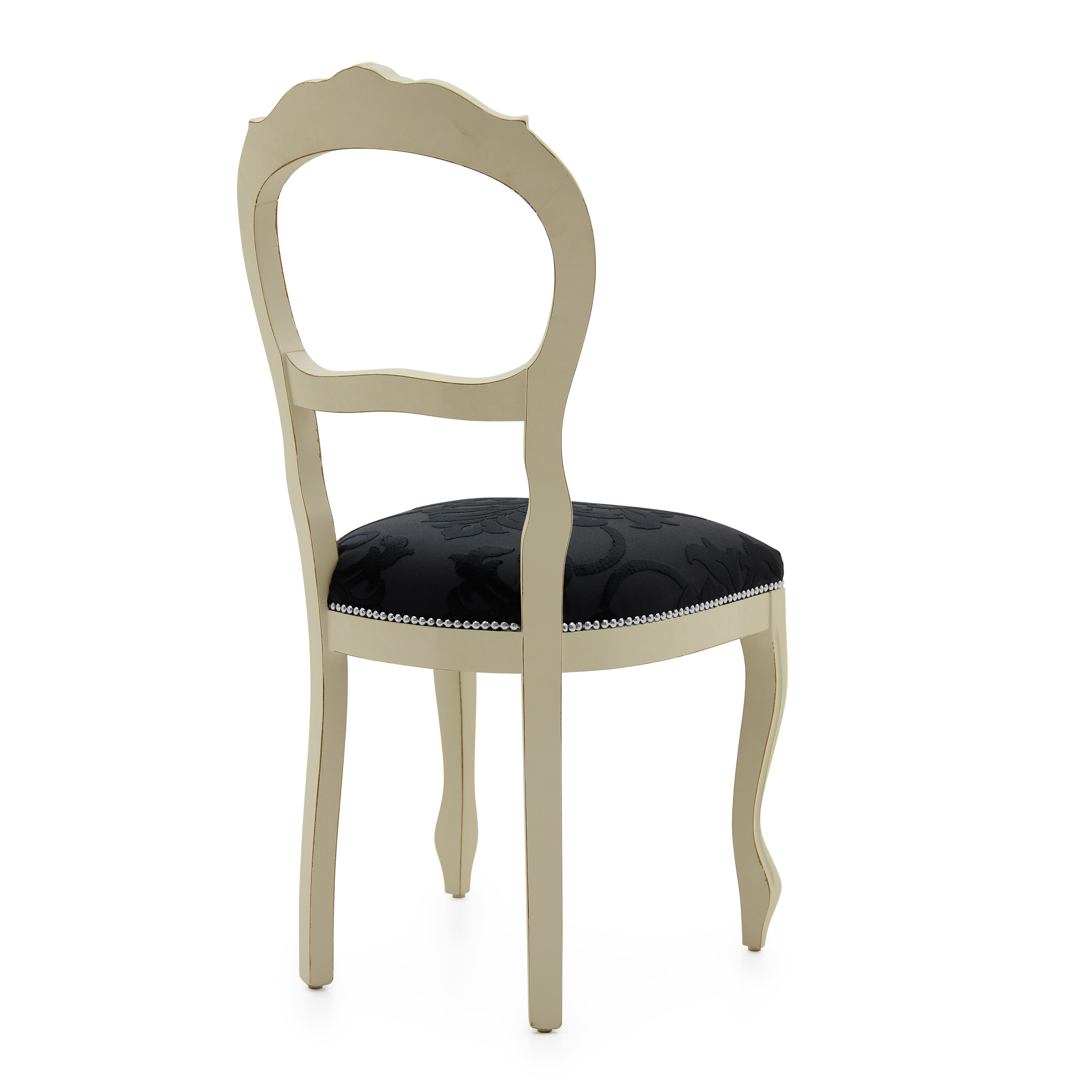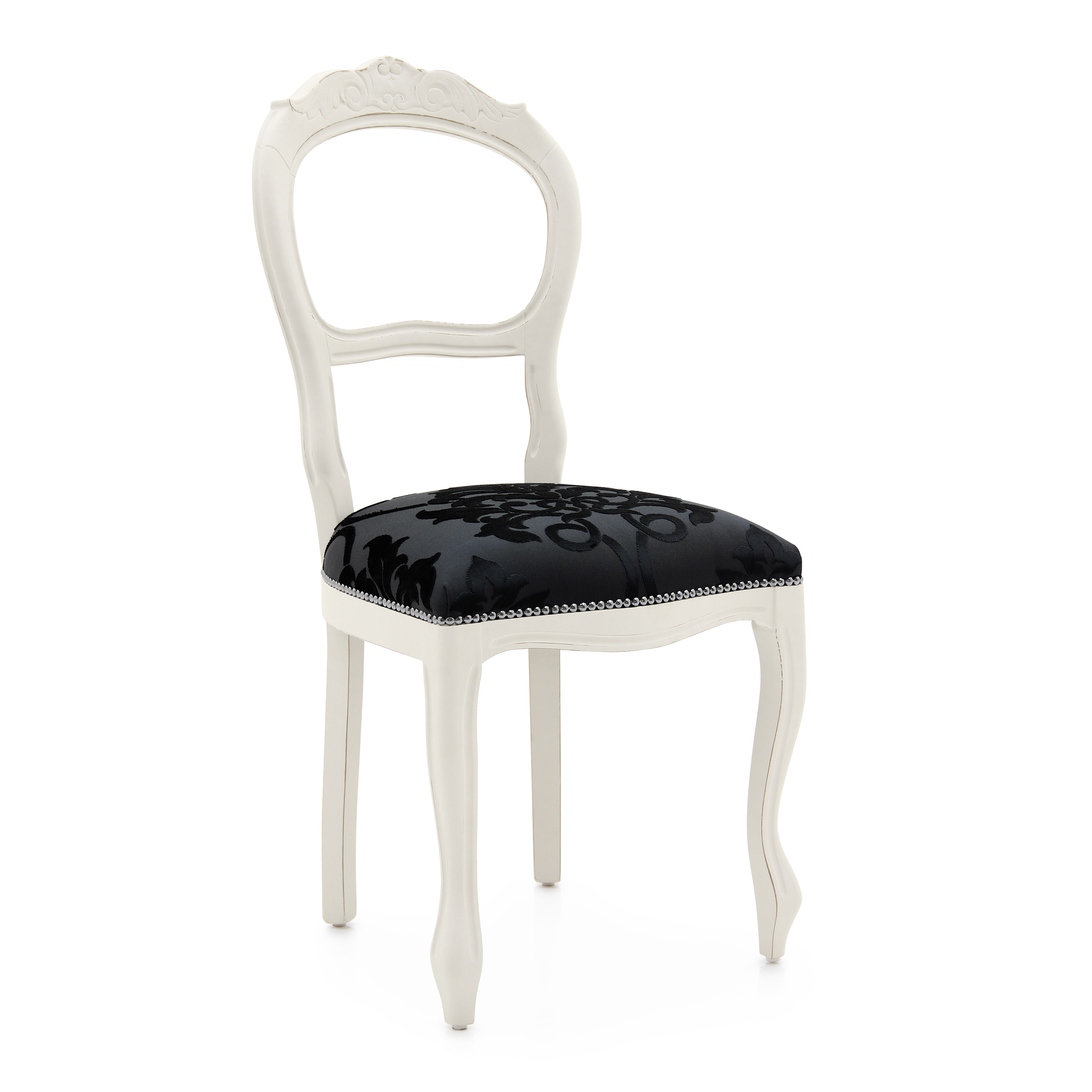 Stellina is a classic Louis Philippe replica chair, with a slightly carved backrest and a solid beech wood structure. The contained dimensions make it ideal for contract use. Can be reinforced with additional side rails or "U" stretcher, the perfect hotel chair. Upholstery can be customised with nails, braiding, double welt or welt. 100% made in Italy.