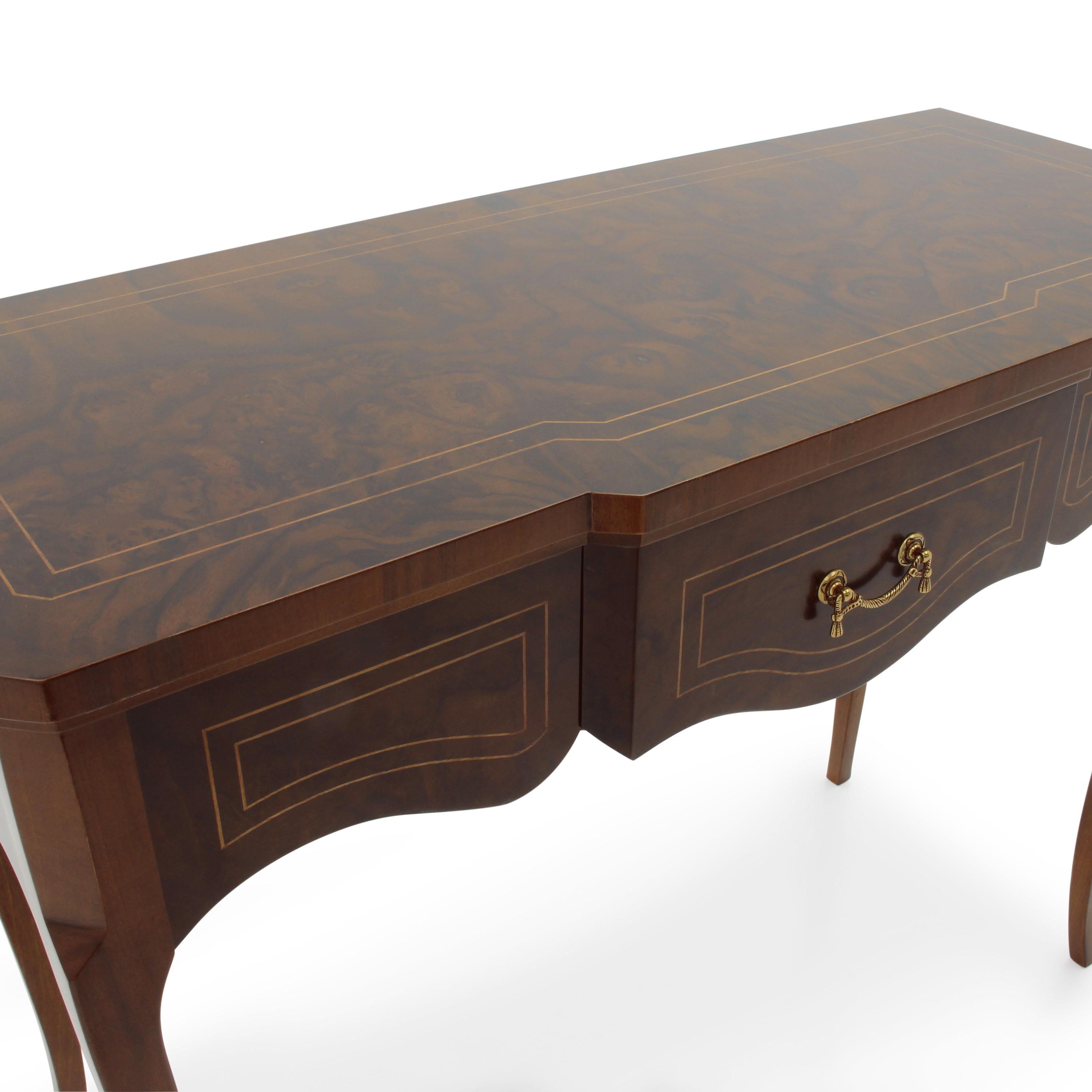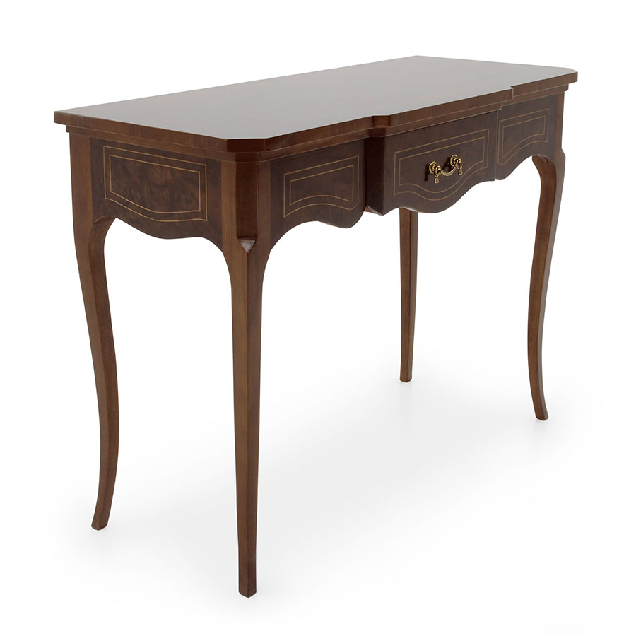 It features a central drawer with inlays that underline the shape and an original briarwood top that enriches the whole item.