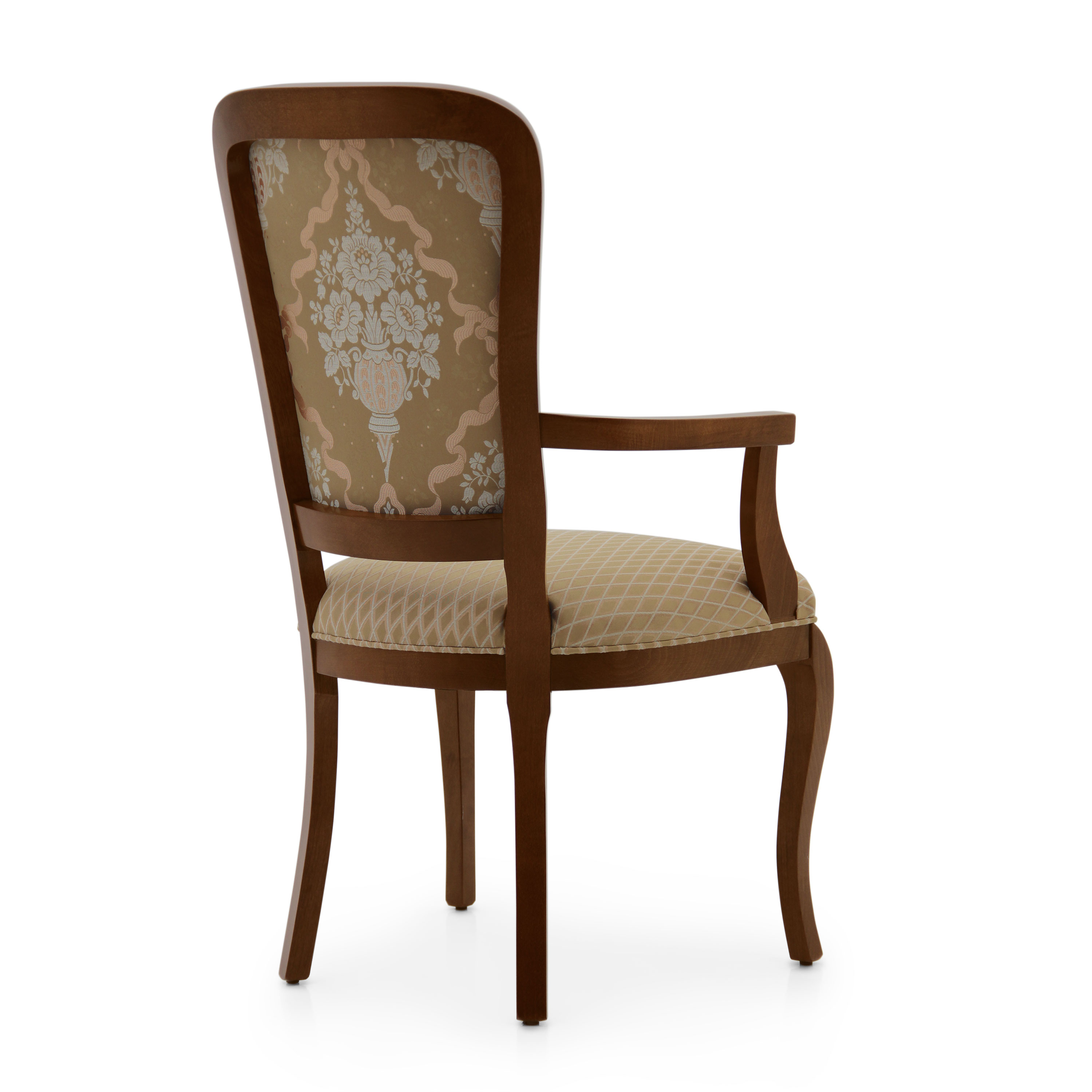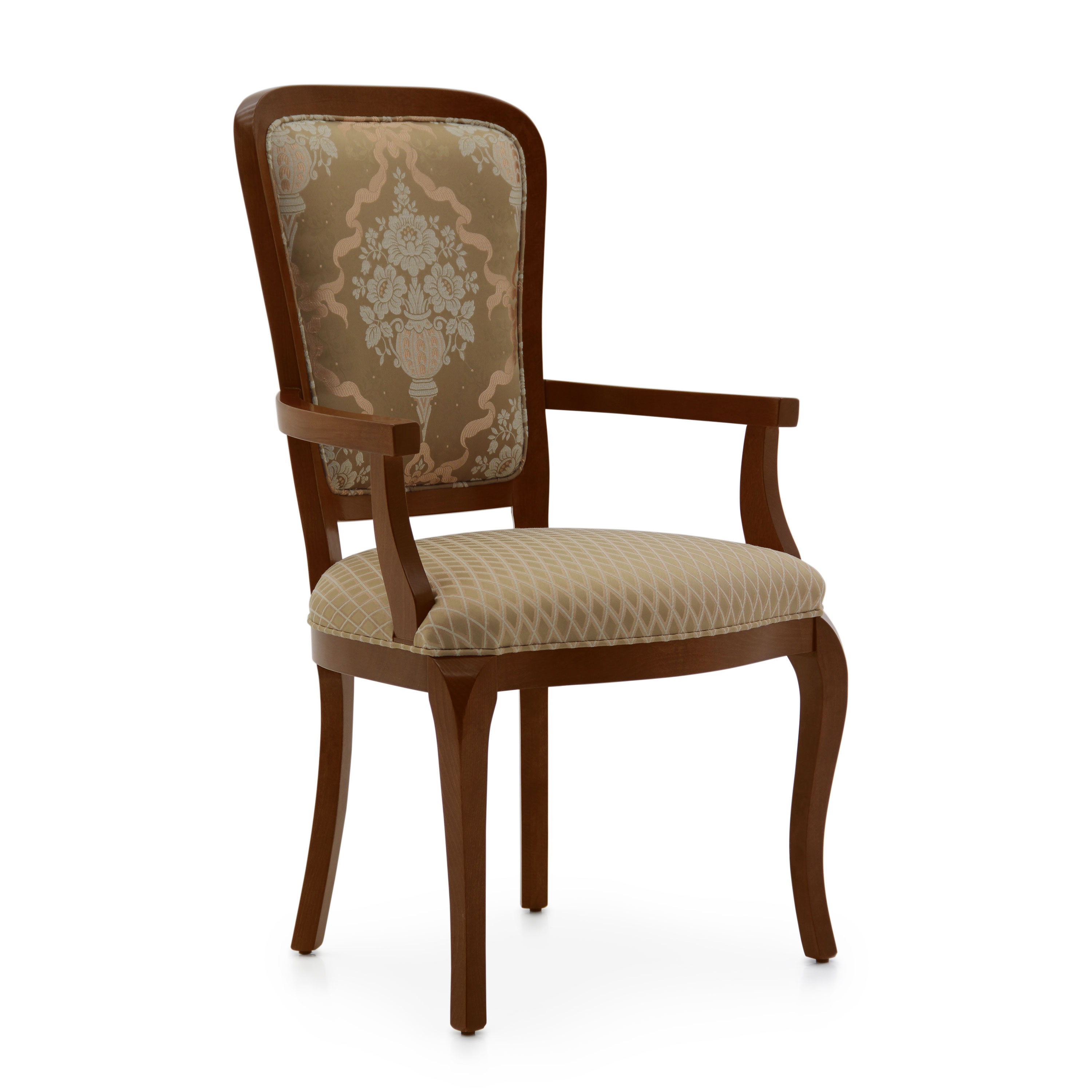Elegant contemporary style small armchair with beech wood structure featuring simple and sinuous lines.