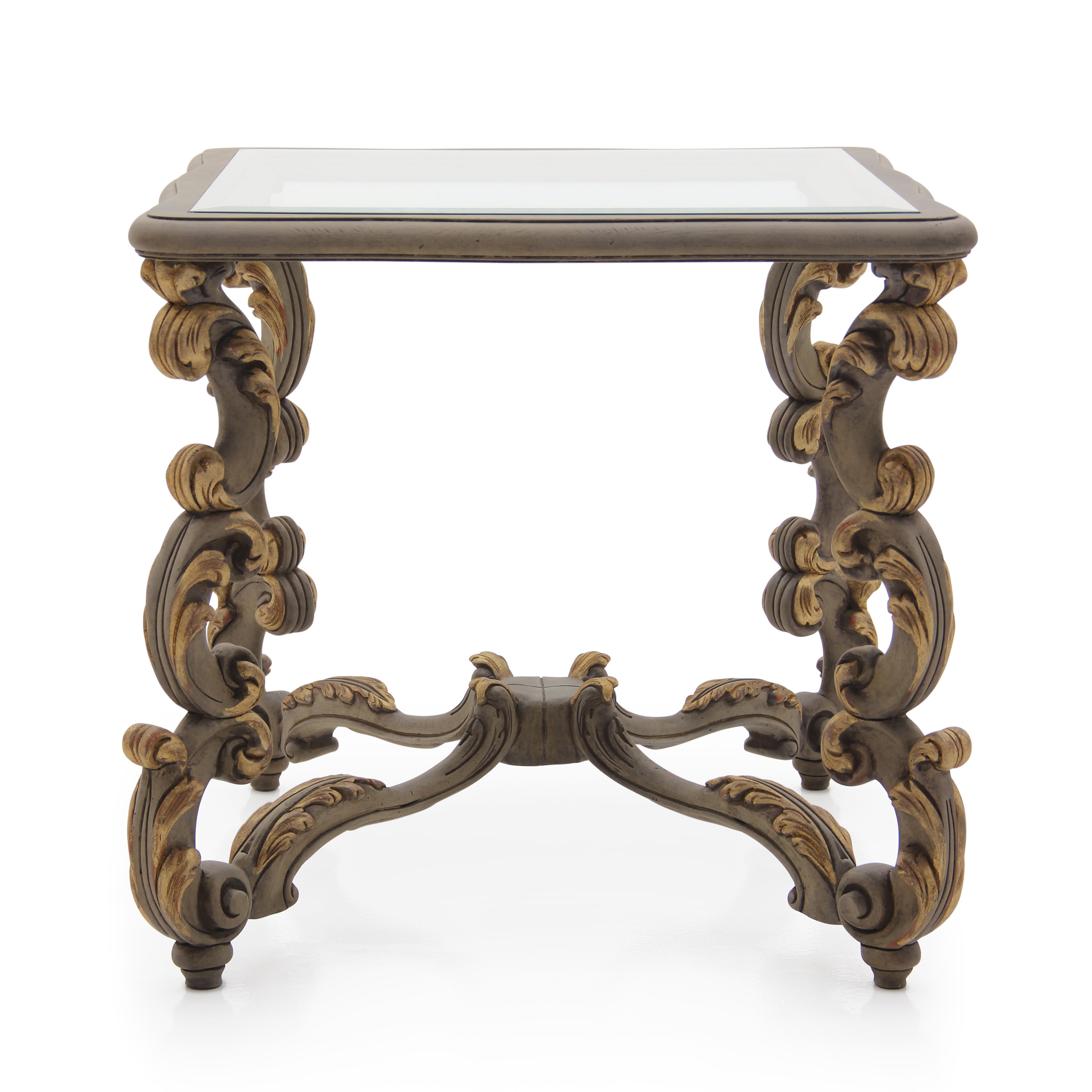 It features many carved details that can be enhanced with a silver or gold leaf lacquer finish.