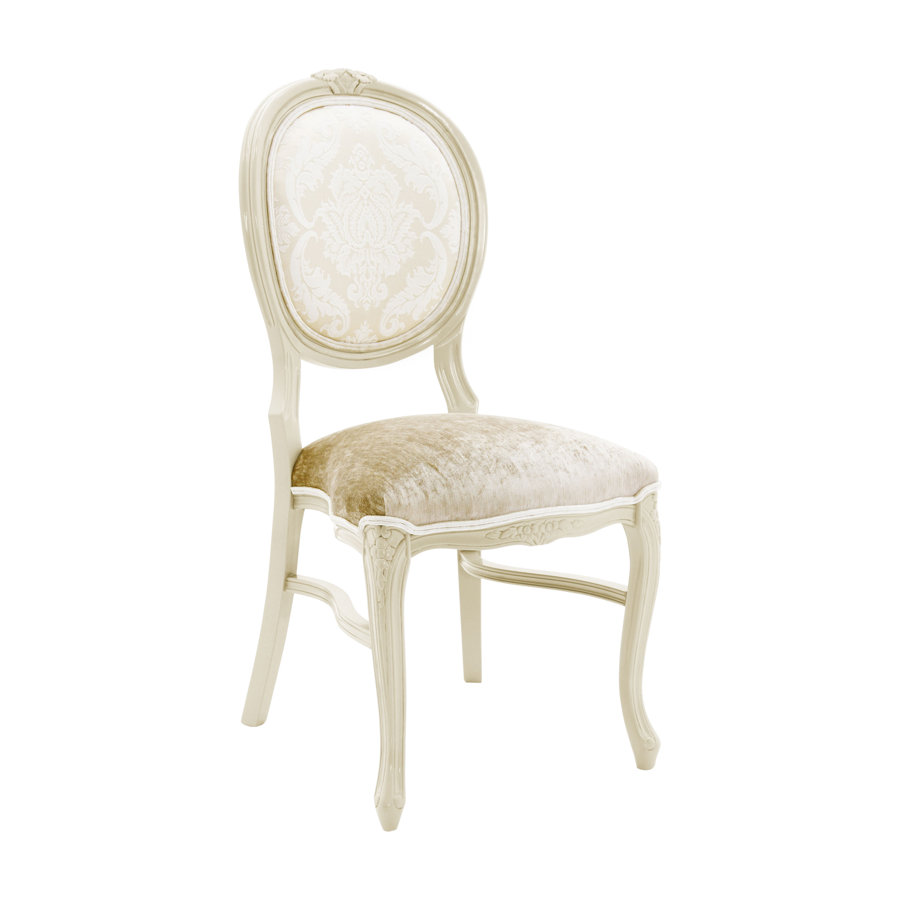 The carvings on the legs and back can be enhanced with a silver or gold leaf lacquer finish.