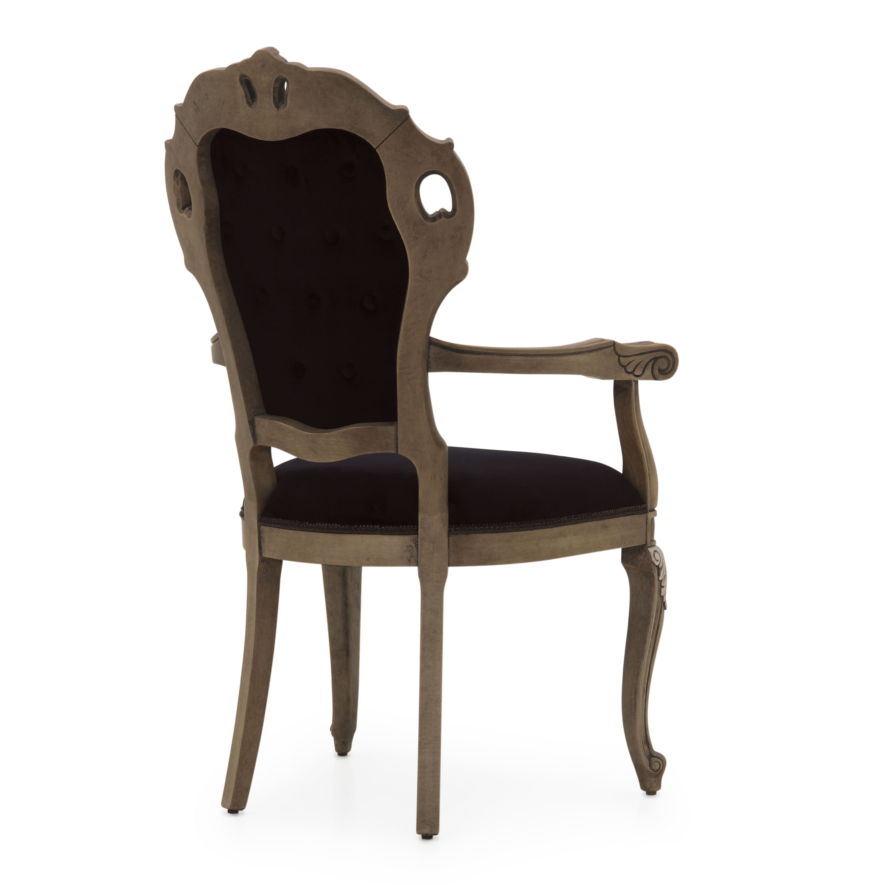 Classic style small armchair with a particularly elaborate beech wood structure.