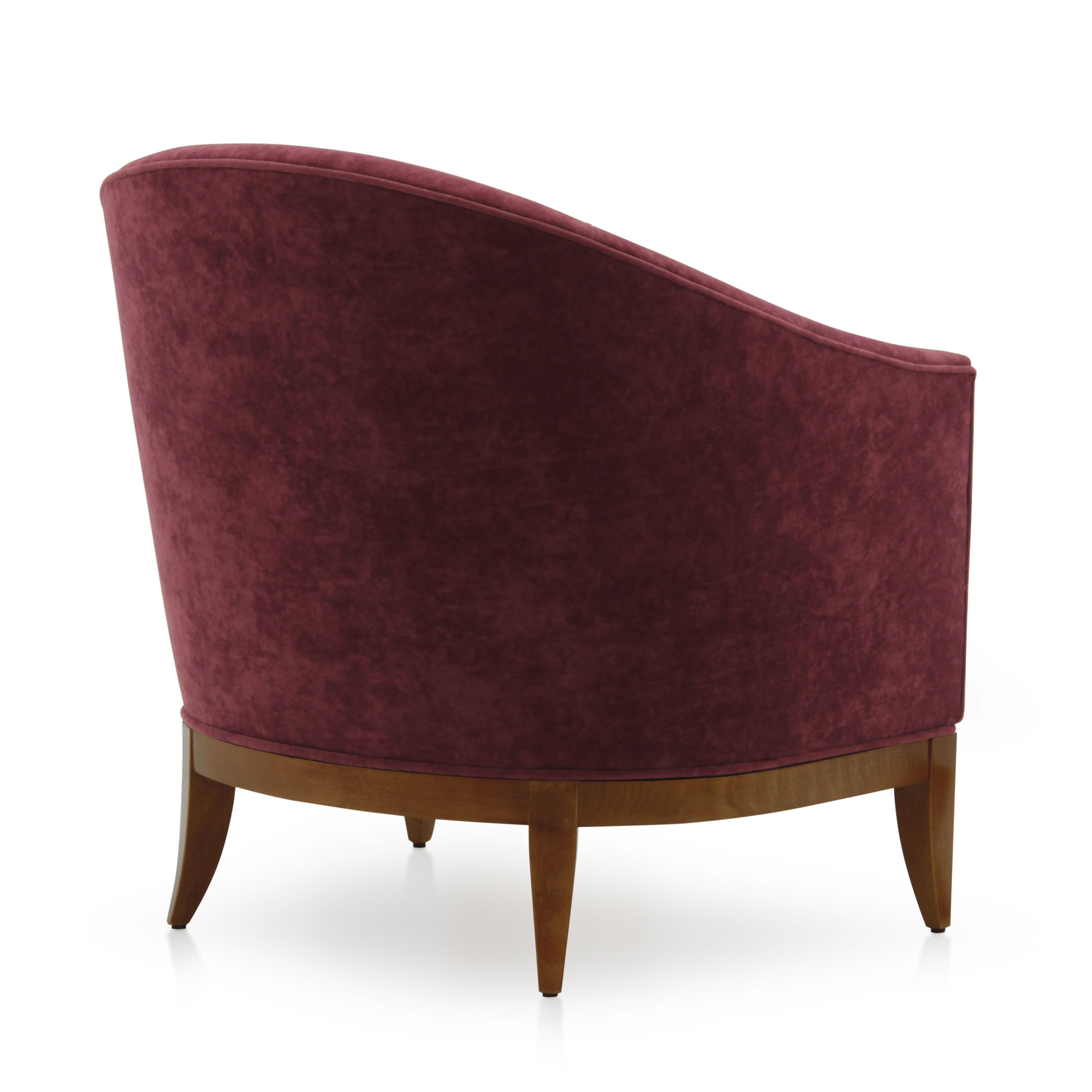 Very comfortable armchair with markedly contemporary lines and wooden structure.