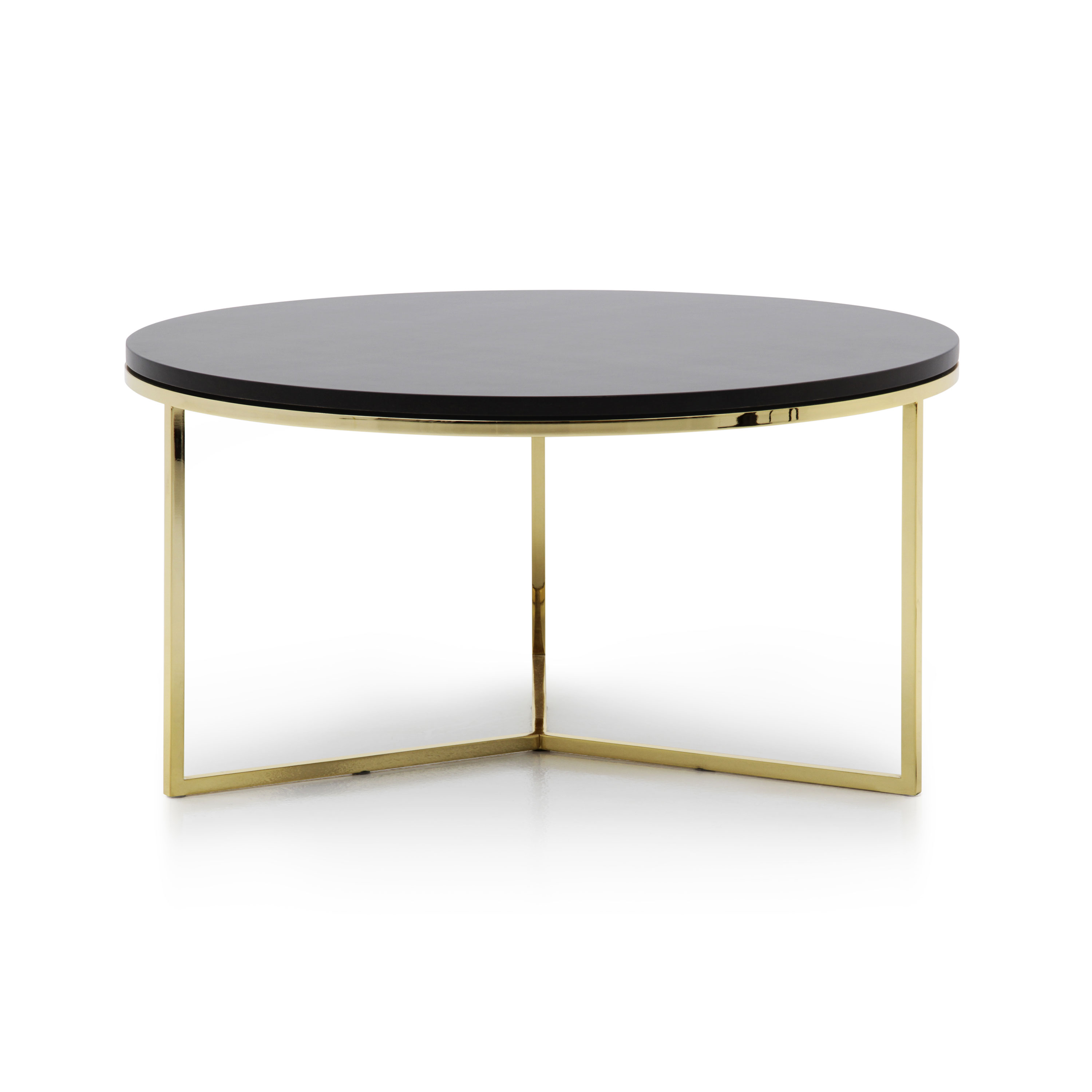 Very elegant Modern round coffee table with metal structure and wooden top.
